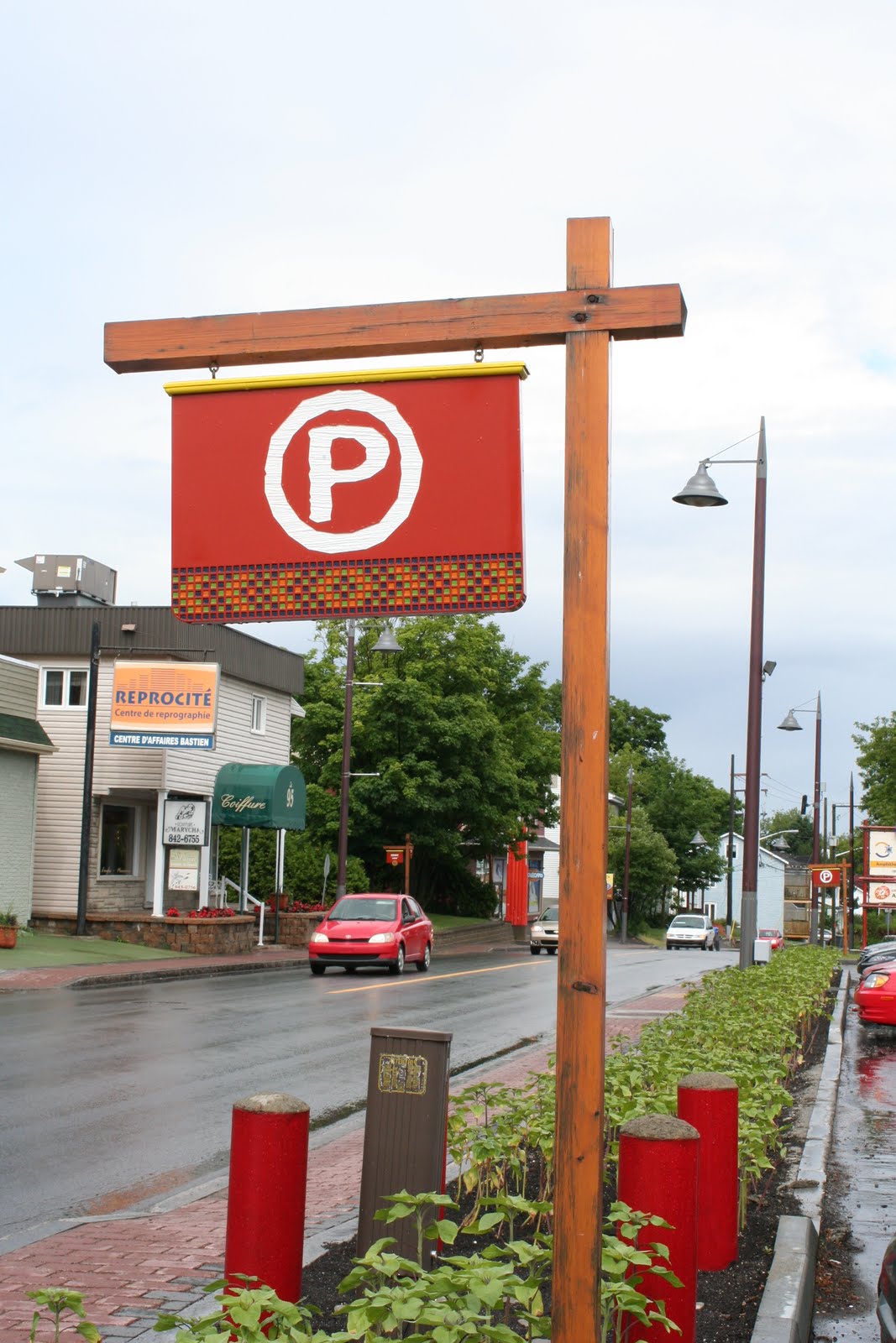 Wendake. This reserve is unlike any other reserve that I've seen. A lot of thought went into designing the community, the street signs, the parking lots signs, details in building, etc.